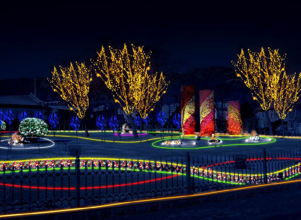 景區(qū)亮化設(shè)計是通過有效規(guī)劃布局燈光,營造景區(qū)氛圍及提升景區(qū)娛樂性,從而吸引游客。